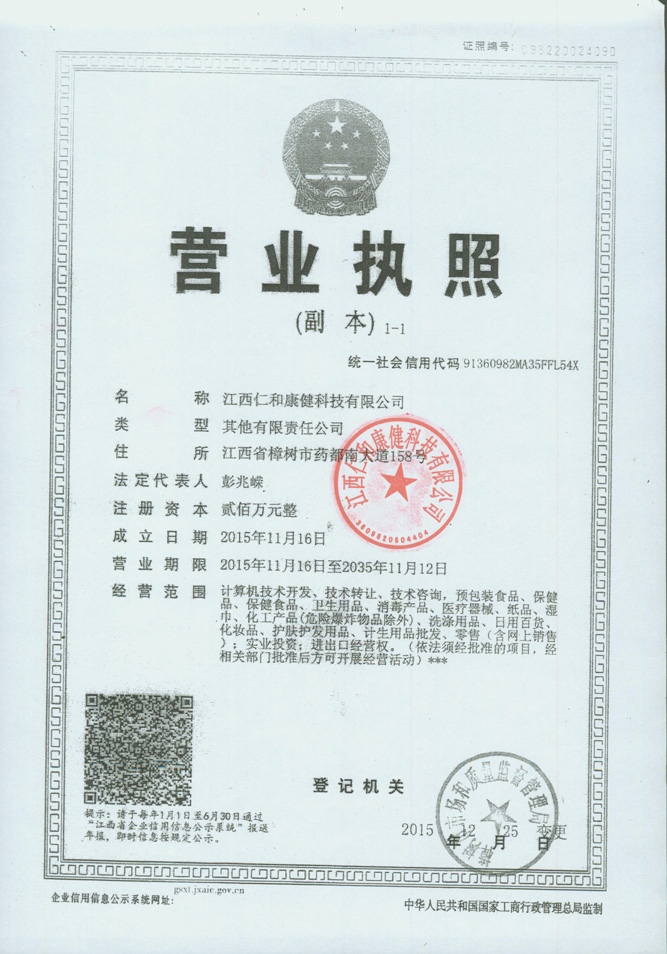 您好,歡迎光臨江西仁和康健科技有限公司官方網(wǎng)站,仁和康健 做大健康產(chǎn)業(yè)的領(lǐng)跑者 |